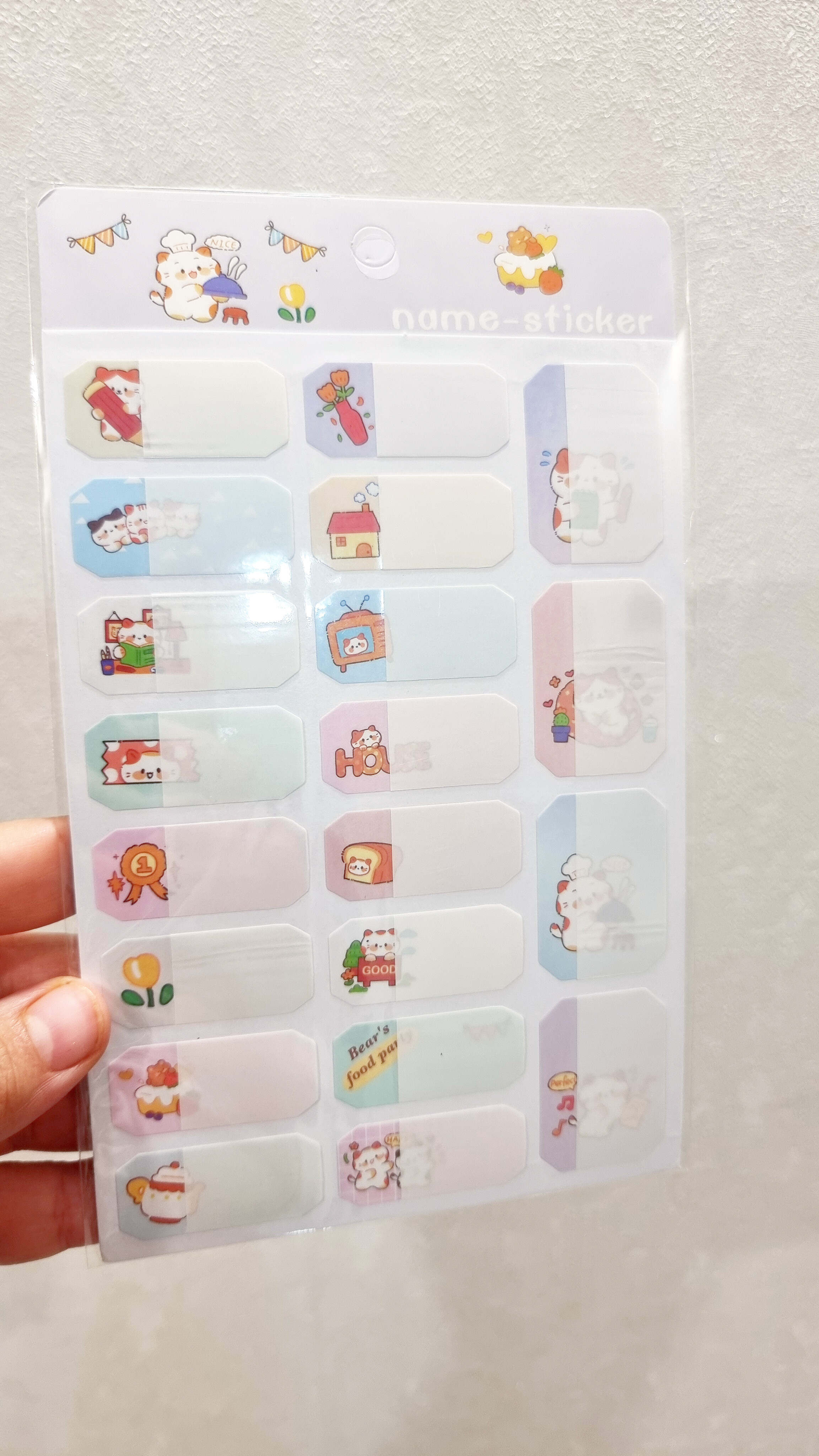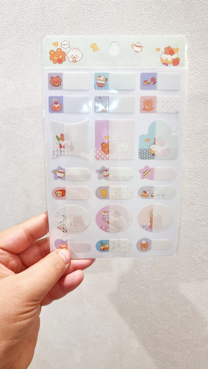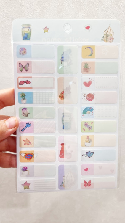 دارای یک لایه پلاستیکی که روی اسم چسبیده میشود و استیکر را ضدآب میکند